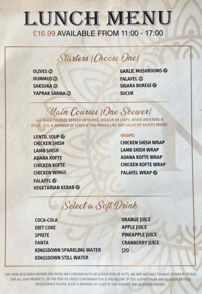 Guests can expect classic staples such as tender kebabs and rich casseroles alongside fresh vegetarian options like falafel and stuffed aubergine. The menu also features popular treats like baklava for a subtly sweet finish, while drinks like a well-made martini or comforting Turkish tea provide the perfect accompaniment throughout the meal.